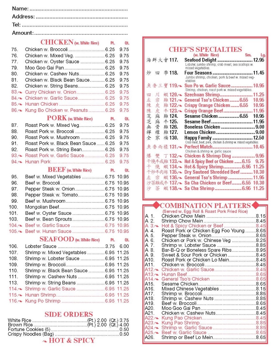 The menu includes delectable appetizers like Boneless Spare Ribs and Cheese Wontons, priced at just $4.50 for ten. When it comes to fried rice, options range from Vegetable to Lobster Fried Rice, satisfying various cravings. Special dishes, like the Fried Half Chicken, add a unique touch to the offerings.